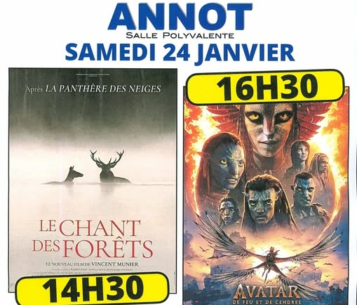 Le Cinéma de Pays et la Mairie d’Annot vous proposent 2 séances : à 14h30 “le chant des forêts” et à 16h30 “avatar : de Feu et de Cendres”.