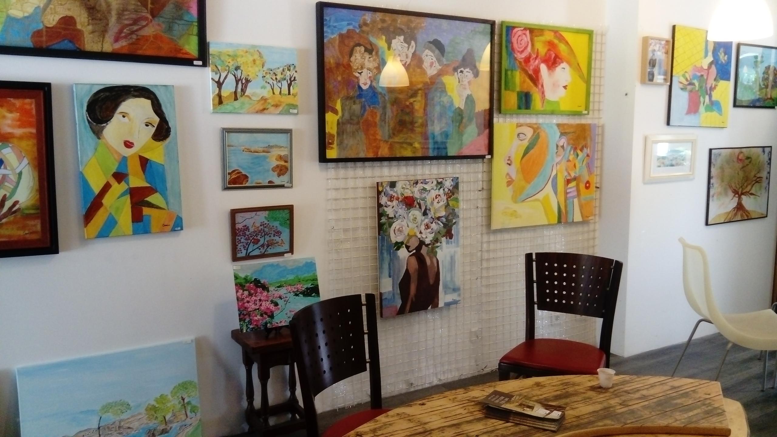 Créations et tableaux d'artistes locaux : céramiques, toiles, sculptures.